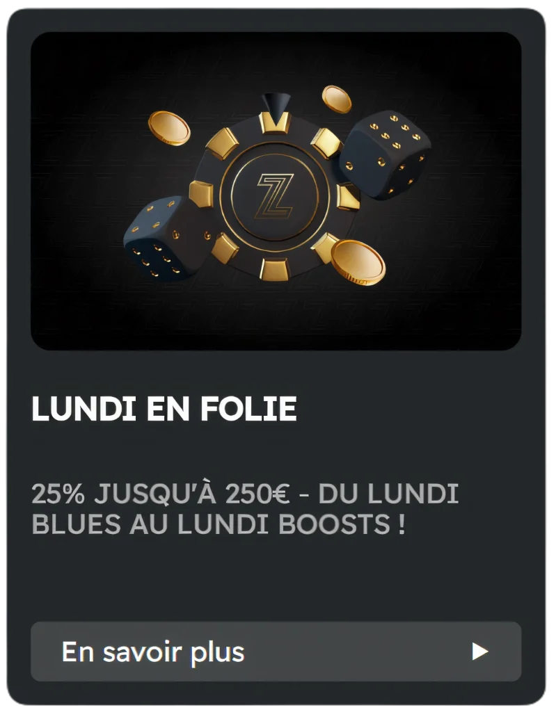 Commencez la semaine par une victoire ! Bénéficiez d’un bonus de 25 % jusqu’à 250 € chaque lundi et augmentez vos chances avec des Boosts Blues.